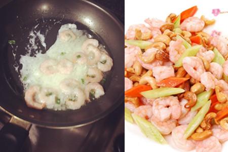 接着,我们需要在锅中倒入少许的油,再将事先准备好的虾仁沥干水分,然后将它倒入锅中翻炒。待虾仁表面慢慢变红之后,我们需要将之前准备好的芹菜和腰果倒入锅中,继续翻炒一段时间之后,我们就可以将它盛出来了,这样一道美味的虾仁炒腰果便做好了。