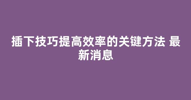 大家好,今天我来和大家聊一聊关于插下技巧提高效率的关键方法 最新消息的问题。在接下来的内容中,我会将我所了解的信息进行归纳整理,并与大家分享,让我们一起来看看吧。
